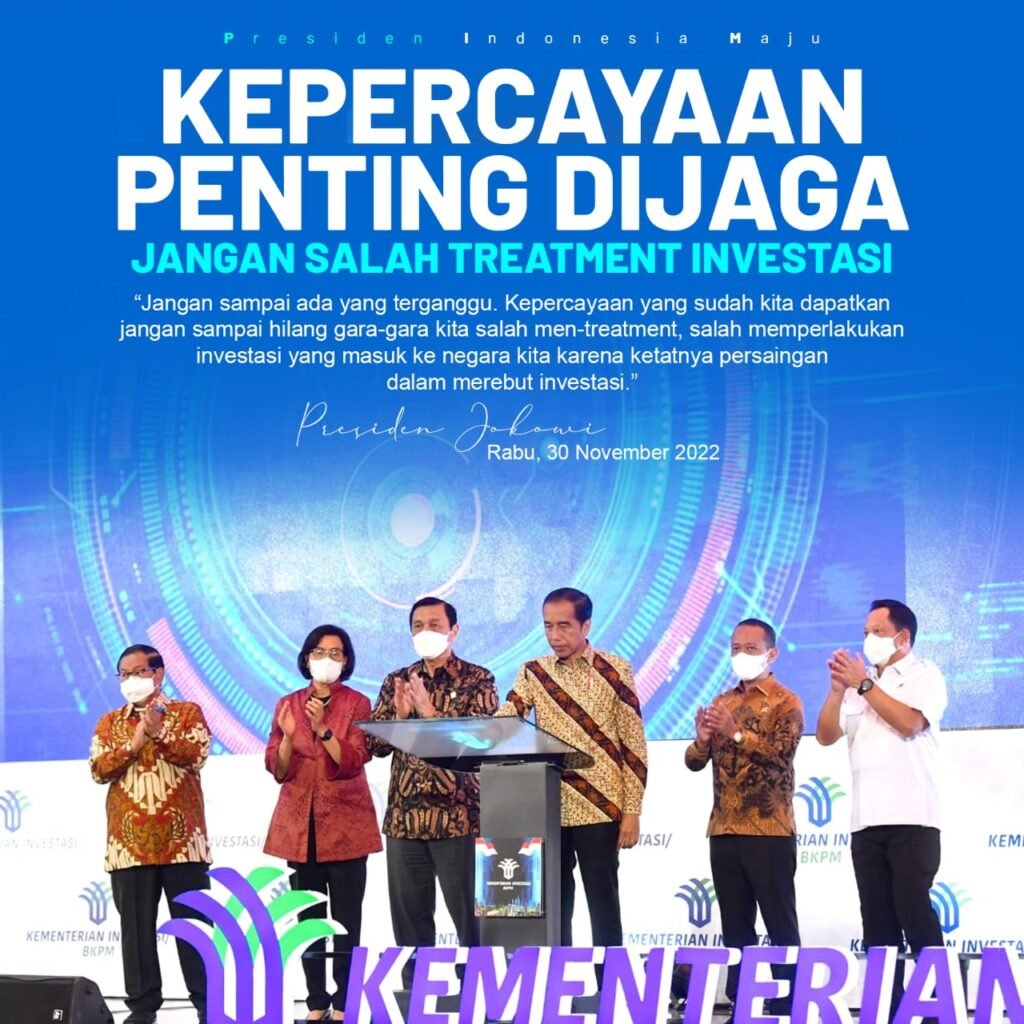 “Jangan sampai ada yang terganggu. Kepercayaan yang sudah kita dapatkan jangan sampai hilang gara-gara kita salah men-treatment, salah memperlakukan investasi yang masuk ke negara kita karena ketatnya persaingan dalam merebut investasi,” tegasnya.