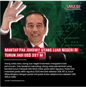 Tren penurunan utang luar negeri (ULN) atau utang valas Indonesia terus berlanjut. ULN Indonesia pada Agustus 2022 tercatat US$ 397,4 miliar, turun dibandingkan dengan posisi sebelumnya sebesar US$ 400,2 miliar. Salah satu penyebab penurunan tersebut adalah pembayaran yang dilakukan oleh pemerintahan Presiden Joko Widodo (Jokowi) atas utang pemerintah yang jatuh tempo. Dikutip dari data Bank Indonesia (BI), Selasa (18/10/2022), posisi ULN Agustus 2022 mengalami kontraksi sebesar 6,5% (year-on-year/yoy).